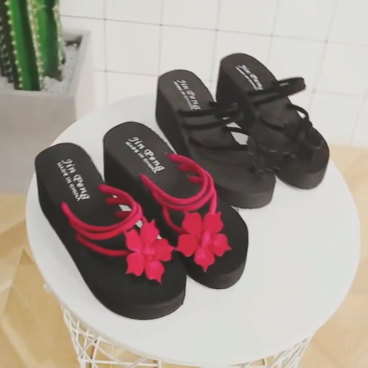 These slippers are crafted with superior materials to offer both durability and comfort. The wedge heel is perfect for adding a bit of height without sacrificing stability, making them ideal for all-day wear. The insole is cushioned to provide soft support to your feet, and the robust outsole ensures slip resistance on various surfaces. Whether you're attending a casual gathering, running errands, or enjoying a relaxing day out, these Black Wedge Slippers with Pink Straps and Flowers are your go-to choice. They seamlessly pair with a wide range of outfits, from breezy summer dresses to more traditional attire, enhancing your style with their unique charm.