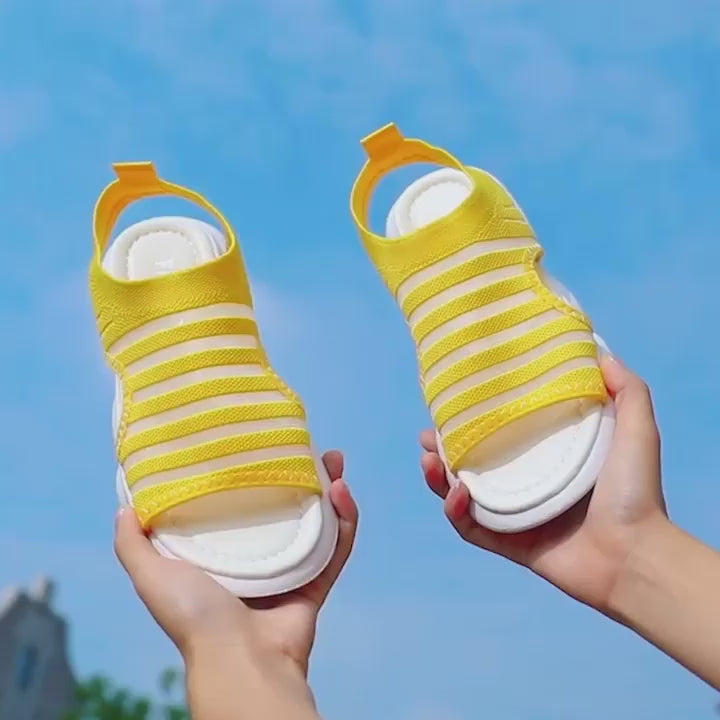 Trendy Athletic Inspired Strappy Yellow Sandals with Chunky Rubber Soles